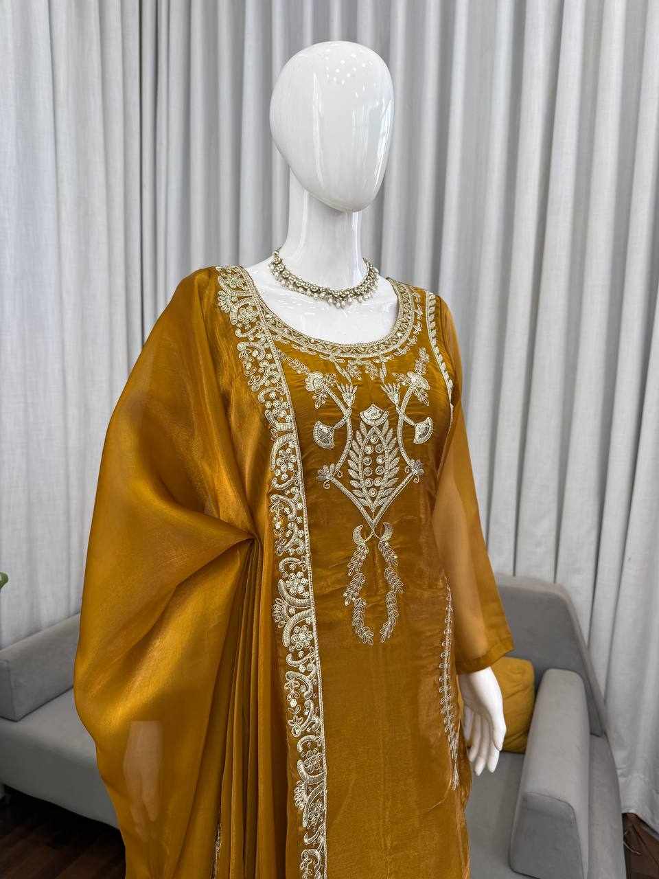 Perfect for weddings, festive occasions, parties, and family functions. The matching embroidery on top, plazzo, and dupatta creates a coordinated, luxurious look.