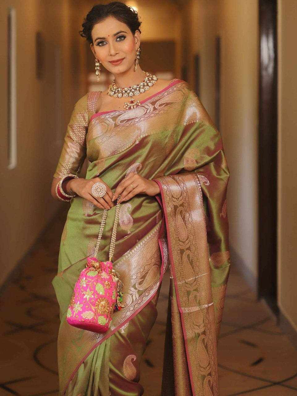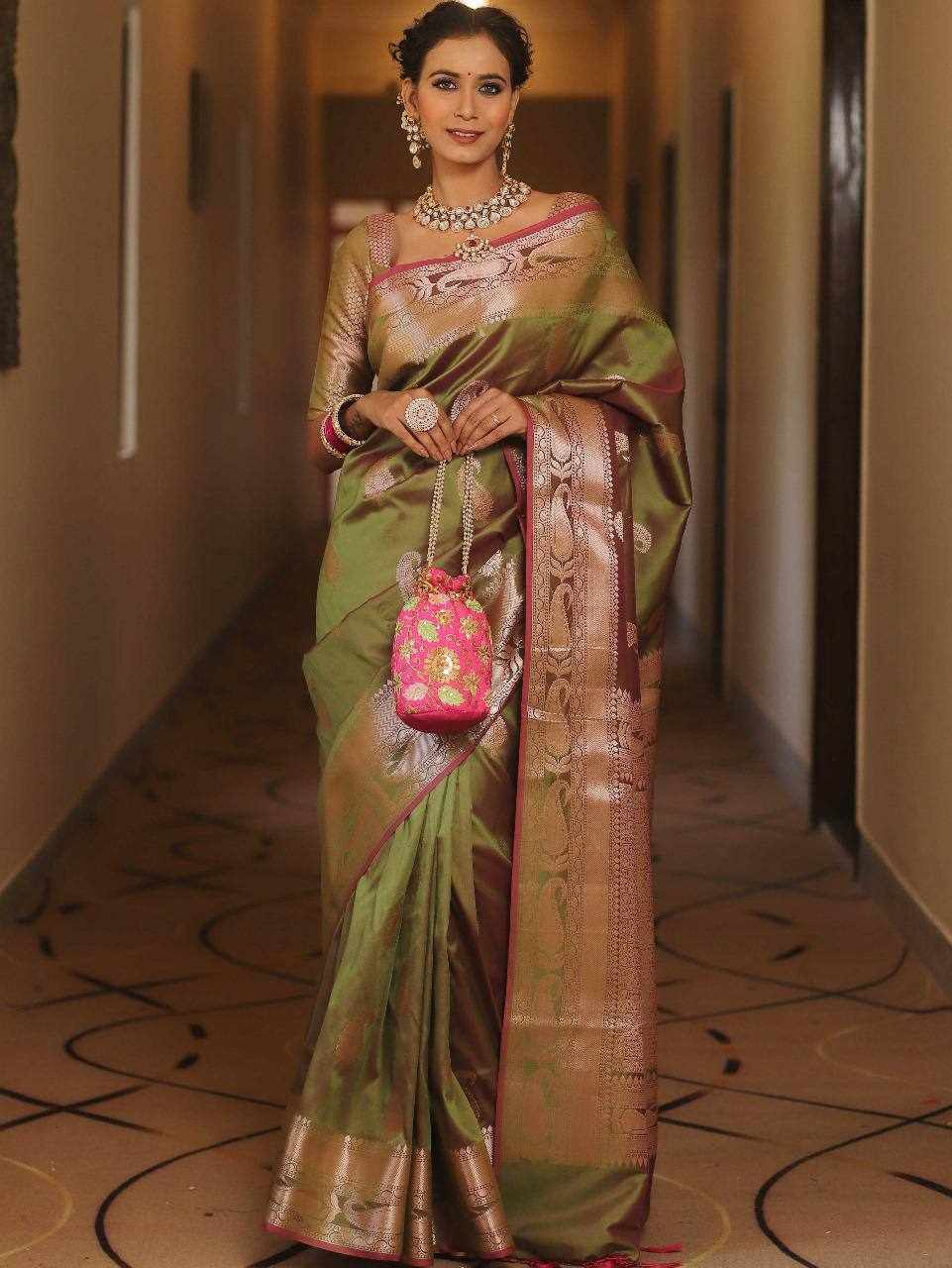 KP-R 276 PURE GOLD ZARI ON Mehndi Colour Saree