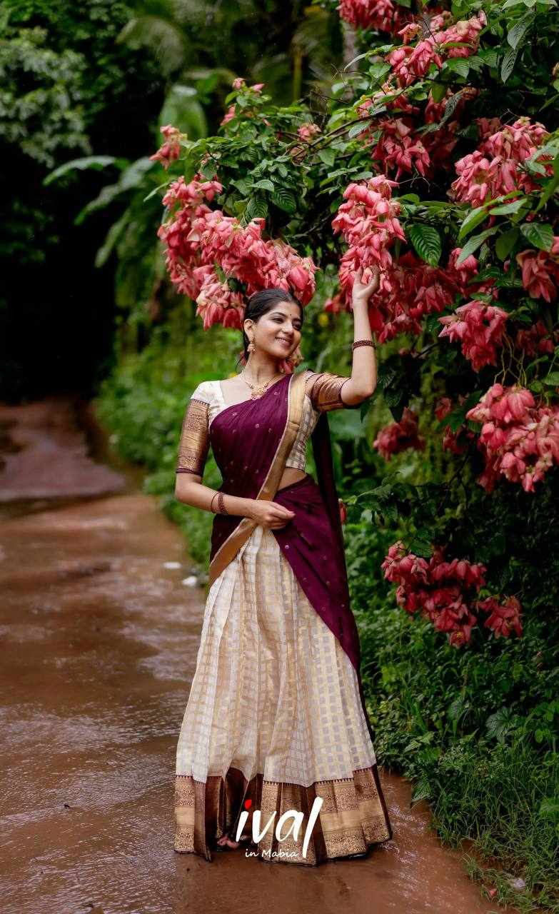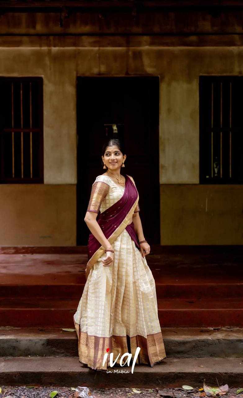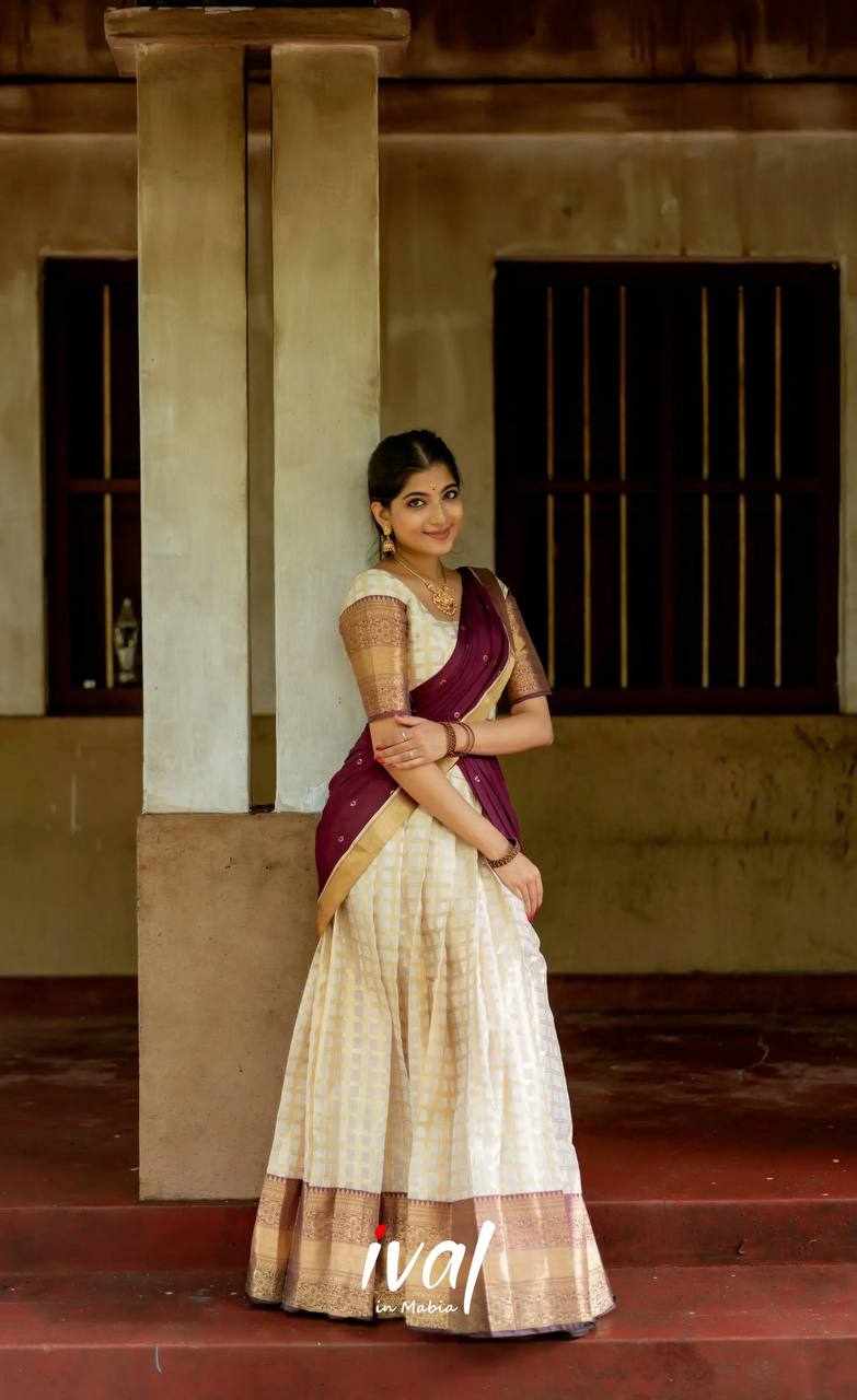 KP-W 352 Kanjiveram Silk Maroon Colour Half Saree