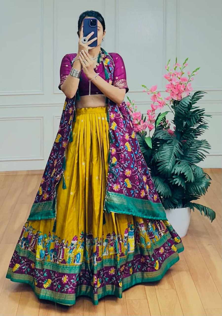 | Name : | PIYU 10-2 Silk Chaniya Choli With Viving Foil Yellow Lehnga |