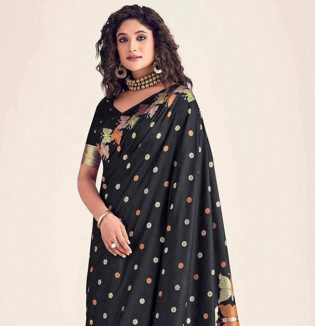 KPR 256 BLACK SOFT LICHI SILK SAREE