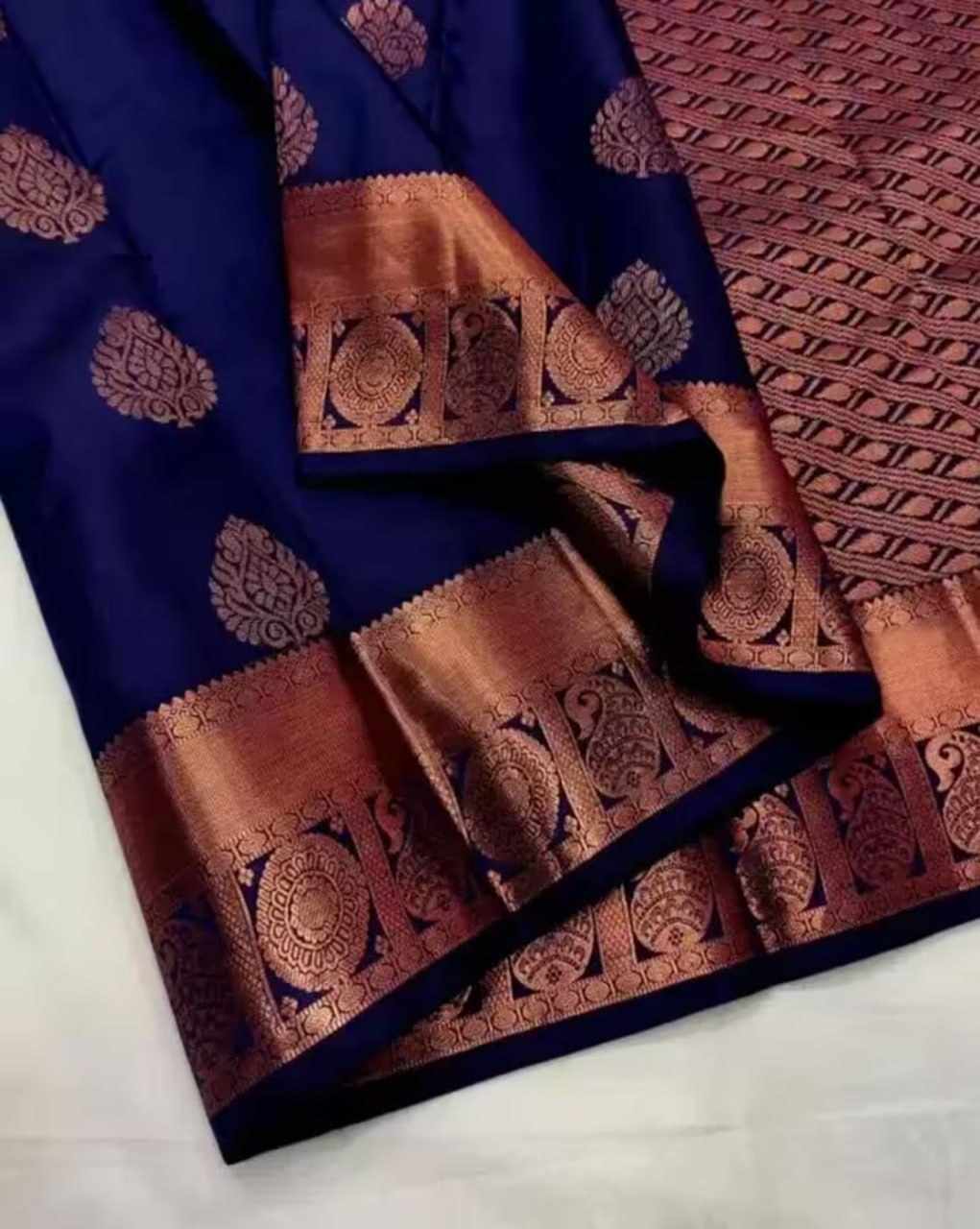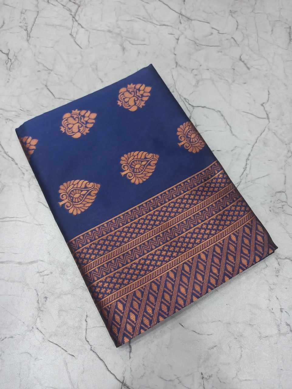 Name : | MF 1940 BLUE SOFT LICHI SILK SAREE |